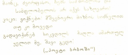და იქვე დასძენს, XIX საუკუნემდე ამის მსგავსი არაფერია ქართულ ლექსში, რის გამოც წინამდებარე მონოგრაფიაში ანჟამბემანის საკითხს ვრცლად ვერ შევეხებითო[2].