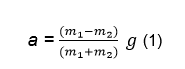 ატვუდის მანქანით სხეულთა სისტემის აჩქარების გამოსათვლელი ფორმულა მარტივად მიიღება ნიუტონის მეორე კანონის გამოყენებით: