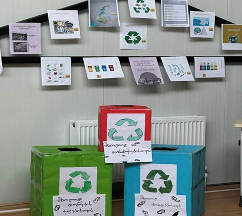- მოსწავლეებმა მეორადი მუყაოს ყუთებისგან დაამზადეს სხვადასხვა ურნები;
