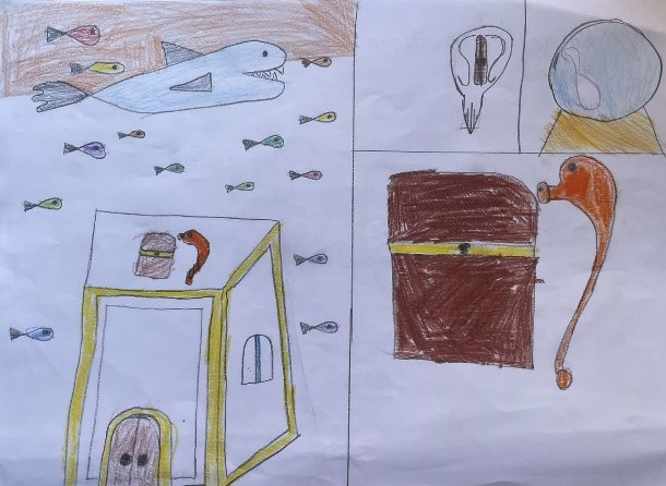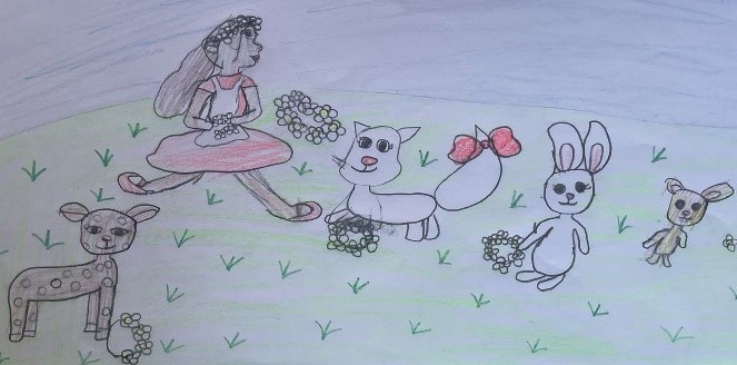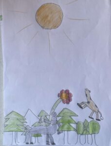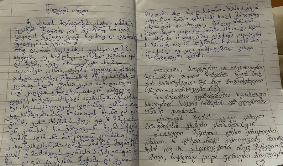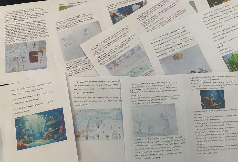დავალებას შემოქმედებითი ელემენტიც დავუმატეთ – ბავშვებმა თავიანთ მონათხრობს ლამაზი ილუსტრაციები დაურთეს.