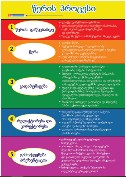 წერის პროცესში გამოვიყენეთ წერის 6 მახასიათებელი და წერის პროცესისთვის საჭირო კომპონენტები: