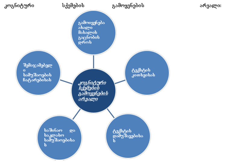 - მოსწავლებისთვის ტექსტური ინფორმაციის სქემატური (გრაფიკული) ფორმით დამოუკიდებლად წარმოდგენის მეთოდების გაცნობას;