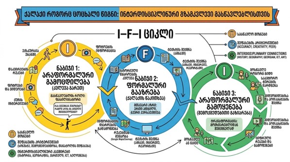 თანამედროვე სკოლის ერთ-ერთი მთავარი გამოწვევაა სასწავლო პროცესის ავთენტურობა. ინფორმაციის მიწოდება აღარ არის საკმარისი. აუცილებელია ცოდნა იქცეს გამოცდილებად, ხოლო გამოცდილება – გააზრებად და მოქმედებად. პროექტი „ქალაქი როგორც ცოცხალი წიგნი“ გვთავაზობს მოდელს, სადაც ქალაქი აღქმულია არა მხოლოდ როგორც შენობების ერთობლიობა, არამედ როგორც ადამიანური ისტორიების, კულტურული მემკვიდრეობის და ურბანული კონტექსტის სისტემა. როდესაც მოსწავლე ამ სივრცის აღიქვამს, როგორც „წასაკითხ ტექსტს“, სწავლა ავტომატურად იცვლის ბუნებას. ის აღარ არის გარედან მოწოდებული ცოდნა ის ხდება აღმოჩენა. წარმოიდგინეთ, რომ თქვენი ქალაქის ქუჩები დიდი ბიბლიოთეკის თაროებია, შენობები – გადაშლილი ფურცლები, ხოლო ადამიანების მოგონებები – ქვეტექსტები. პროექტი „ქალაქი როგორც ცოცხალი წიგნი“ გვთავაზობს რევოლუციურ I-F-I (არაფორმალური – ფორმალური – არაფორმალური) მოდელს, რომელიც მოსწავლეს პასიური მსმენელიდან აქტიურ ცოდნის შემქმნელად გარდაქმნის.