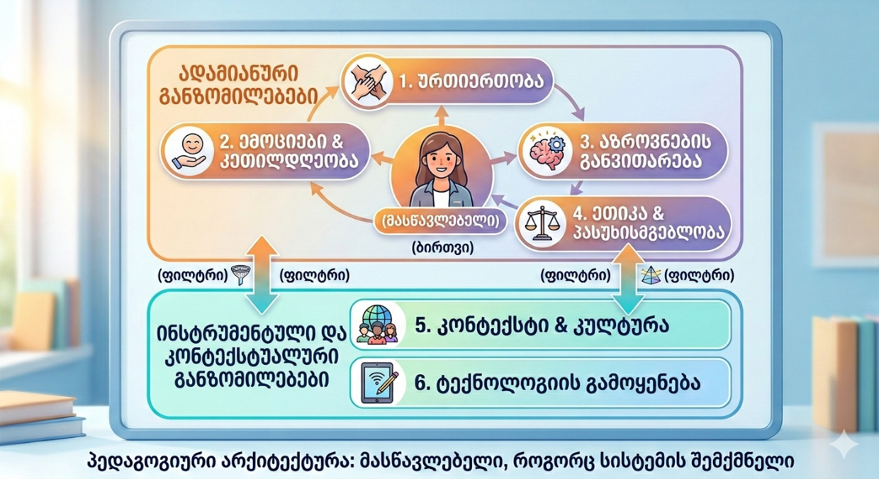 ამ მოსაზრების გასამყარებლად განვიხილოთ ის ძირითადი პედაგოგიური განზომილებები, რომლებიც ცხადყოფს სწავლებაში მასწავლებლის შეუცვლელ როლს ხელოვნური ინტელექტის ეპოქაში.